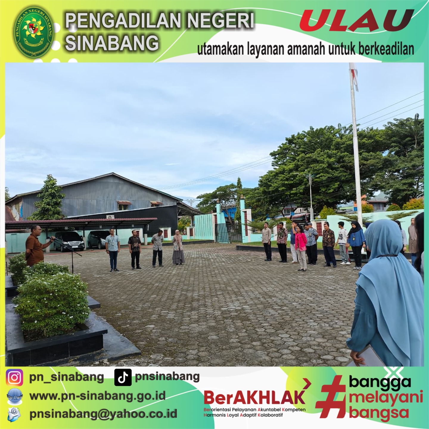 Senin 06 Oktober 2025, Mengawali pekan dengan semangat integritas dan pelayanan prima. Apel Pagi Pengadilan Negeri Sinabang dipimpin oleh Bapak Ketua Pengadilan. .......